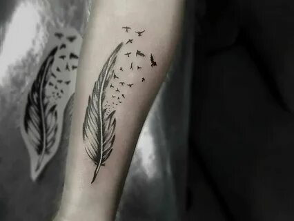 Цвета, которые чаще всего используются для татуировки пера на руке, - это черный, белый, серый и коричневый.